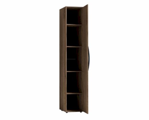 Высокий и глубокий шкаф-пенал для белья позволит максимально полезно использовать квадратные метры маленькой спальни. На 4 полках, регулируемых по высоте, можно легко разместить постельное белье, теплые одеяла и подушки. Гладкие фасады и натуральный декор шкафа привнесут в комнату особый уют и теплоту.