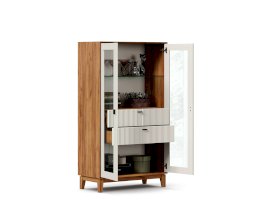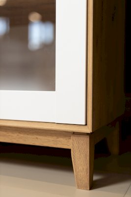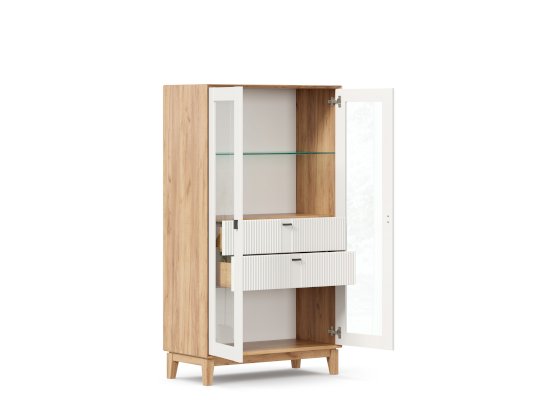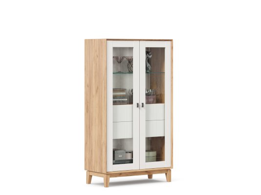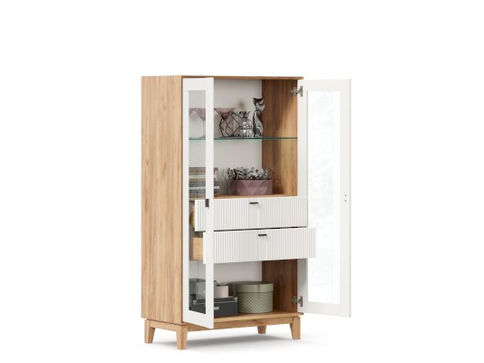 - За сборными распашными дверями со стеклом две стационарные горизонтальные перегородки и одна съемная стеклополка.