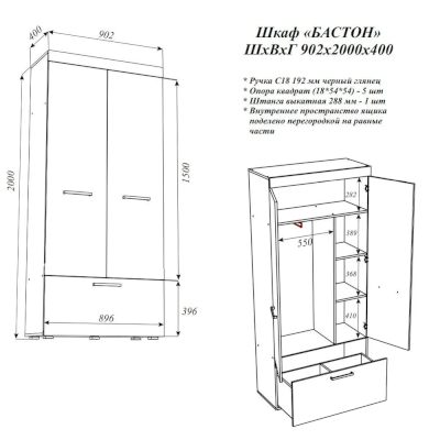 Шкаф Бастон (Эра) – товар доступен к покупке в интернет-магазине permskiy-dommebeli.ru. Цена – 12 452 руб. без учета доставки. Стоимость дополнительных услуг и сроки получения мебели уточняйте у менеджера. Возможен безналичный расчет, оплата по карте на сайте.