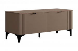Тумба оснащена двумя распашными дверцами, которые открывают доступ к просторным внутренним полкам, идеально подходящим для хранения посуды, бытовой техники, аксессуаров или других предметов. Металлические ручки придают изделию современный вид и удобство в использовании.