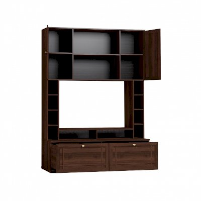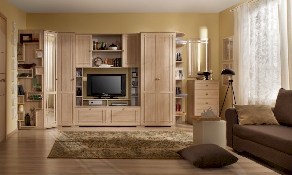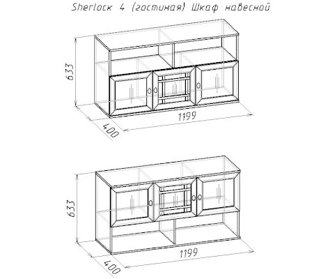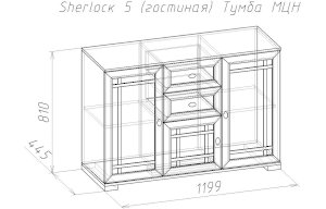 Широкий выбор модулей коллекции SHERLOCK помогает создать уютную гостиную с комфортным рабочим местом, что очень важно для маленькой квартиры. Вместительный 15 Стол письменный можно расположить между шкафами и навесить над ним 4 Шкаф навесной на любой удобной для Вас высоте. 5 Тумба МЦН – отличный вариант не только для хранения вещей, но и для размещения на ней телевизора. Шариковые направляющие тумбы обеспечивают плавность хода выдвижных ящиков. Большой выбор шкафов коллекции SHERLOCK дополнит и то, что 10 Шкаф угловой можно выбрать либо с фасадом Стандарт, либо с фасадом Зеркало. Все фасады модулей коллекции декорированы классическим переплетом из МДФ.