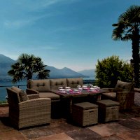 В составе комплекта: трехместный диван, стол с декингом, 2 кресла и 2 пуфа. Высококачественная лоза из полиротанга бежевого цвета стойкая к любым атмосферным явлениям. Крепкий стальной каркас с полимерным антивандальным покрытием и отличным качеством сварки. Изделие сплетено вручную нашими мастерами под жестким контролем качества на каждом этапе производства. Лоза максимально приближена по рельефу и текстуре к естественному материалу. Идеально подходит для использования на улице и внутри помещения в любую погоду. Не боится воды, солнца и минусовой температуры.