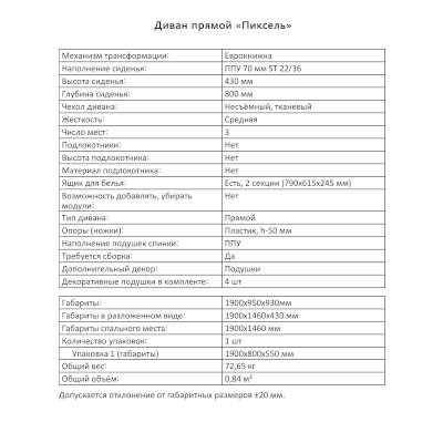 Диван Пиксель (Аквилон) – товар доступен к покупке в интернет-магазине permskiy-dommebeli.ru. Цена – 30 317 руб. без учета доставки. Стоимость дополнительных услуг и сроки получения мебели уточняйте у менеджера. Возможен безналичный расчет, оплата по карте на сайте.