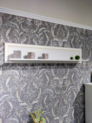 Настенная полка - это неизменный и важный атрибут гостиной спальни или детской комнаты. В модульной коллекции "Cиена" вы найдёте широкий выбор различных полок и сможете подобрать нужную именно вам модель. Представленный вам модуль универсален и подходит ко многим изделиям из коллекции. Декоративная отделка в виде фигурного профиля с золотой патиной подчеркивает классический стиль, а ЛДСП светлого оттенка «Бодега белый» с древесной текстурой подарит тепло и уют интерьеру спальни или гостиной.